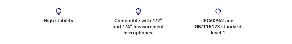 It is suitable for sound pressure calibration of acoustic measuring instruments such as microphones, sound level meters and noise analyzers to eliminate environmental errors. The dual sound pressure levels of 94 dB and 114 dB can ensure accurate calibration in noisy environments.