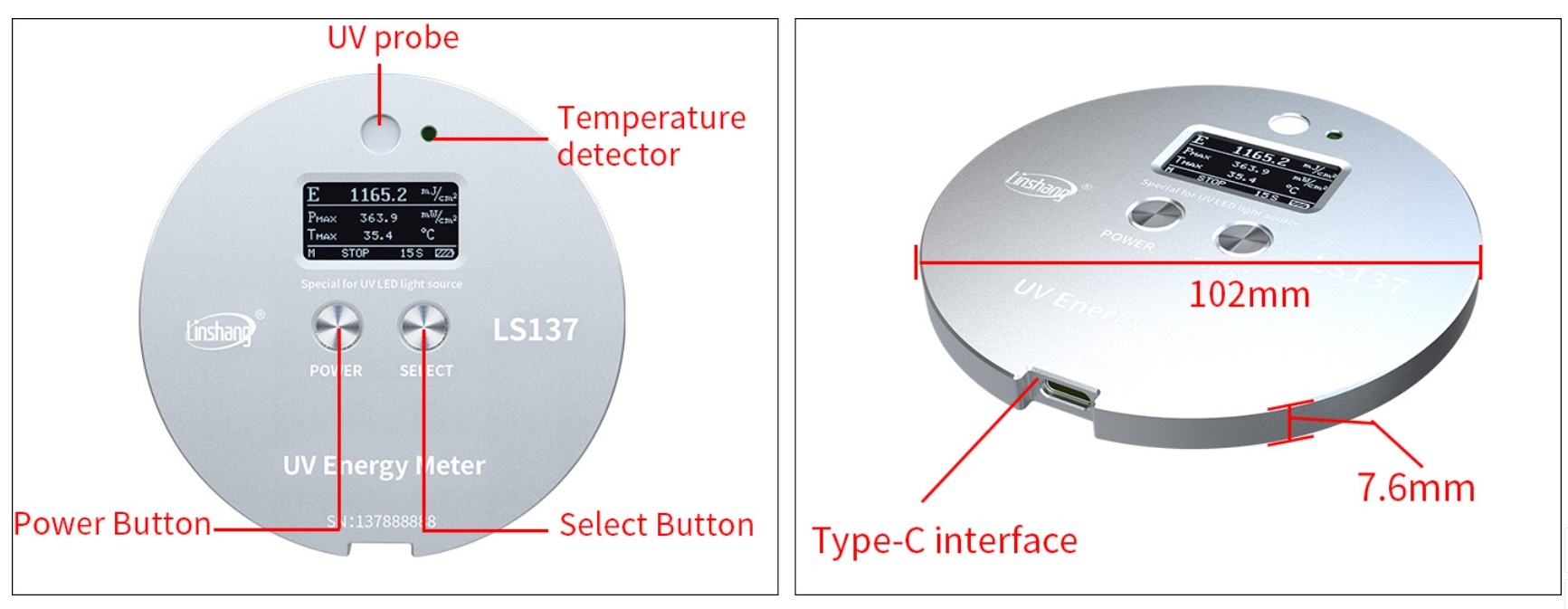 | Parameter | LS137 UV Energy Meter |